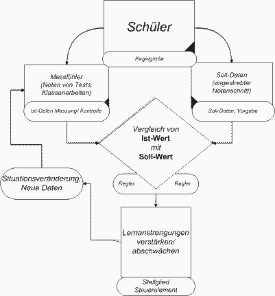 vermehrt seine Lernaufwendungen (Stellglied). Erneute Tests (Messfühler) zeigen
