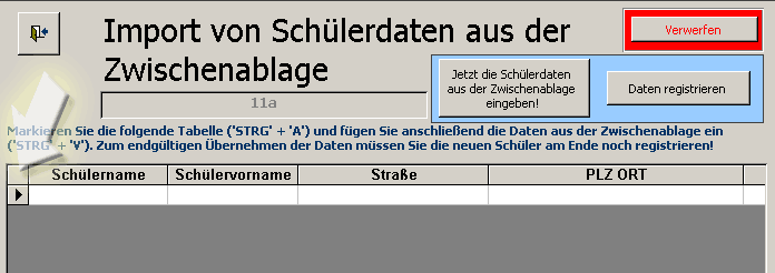 Klicken Sie auf den "Jetzt die Schülerdaten aus der Zwischenablage eingeben!"-Button. Wenn die Einträge Ihrer Vorstellung entsprechen, bejahen Sie die Programmnachfrage und klicken dann auf "Daten registrieren" um die Schüler-Datensätze einzutragen.